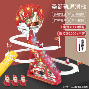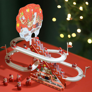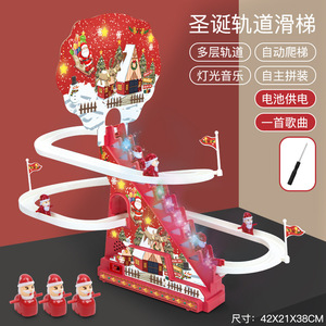跨境亚马逊圣诞系列轨道滑滑梯自动循环爬楼梯灯光音乐儿童玩具
