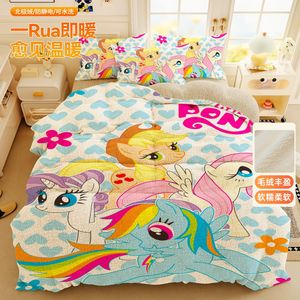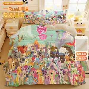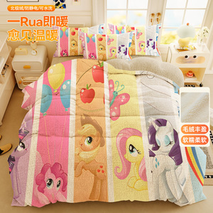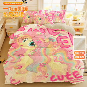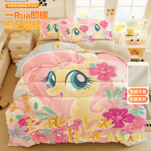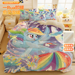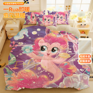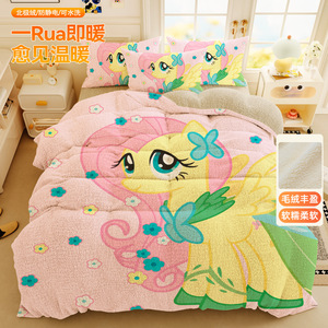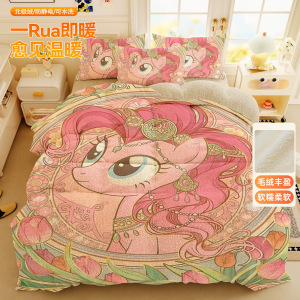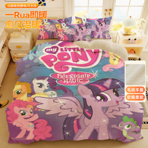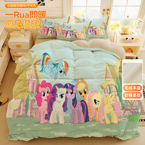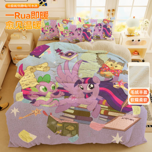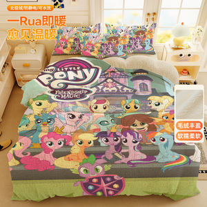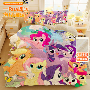 卡通可爱小马宝莉冬季北极绒四件套加绒床单被套保暖加厚卧室1.5m