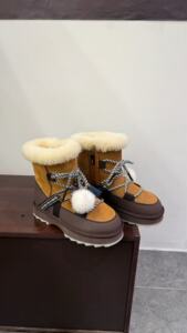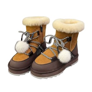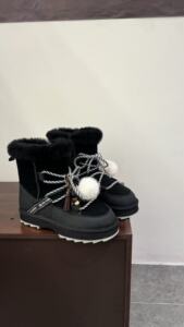 2025秋冬新款外贸大码雪地靴女羊羔毛细绳串珠翻口短筒靴跨境批发