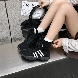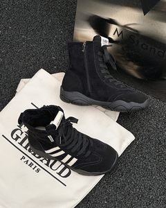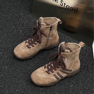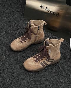 复古高帮反绒马丁靴女2025春秋季新款真皮短靴双色鞋带休闲马丁靴