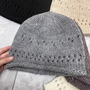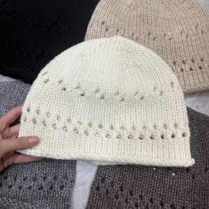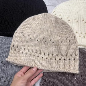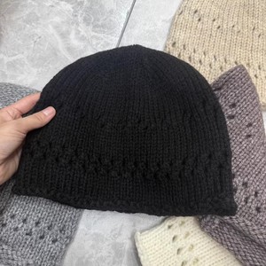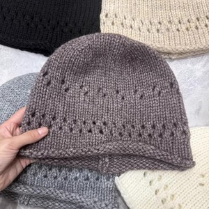 韩系镂空针织羊毛混纺毛线帽女秋冬百搭显脸小弹力大头围套头冷帽