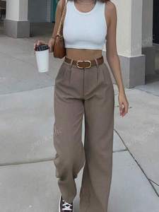 2025年韩版阔腿裤女士秋季新款高腰西装裤宽松垂感拖地直筒长裤潮