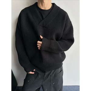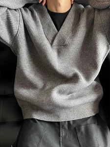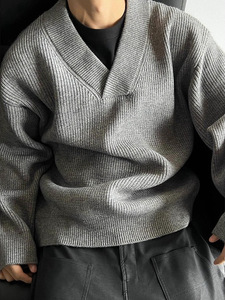 灰色美式复古v领毛衣男款冬季慵懒风高级感cleanfit鸡心领针织衫
