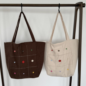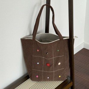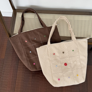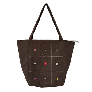 纽扣灯芯绒单肩:棕(袋口拉链)