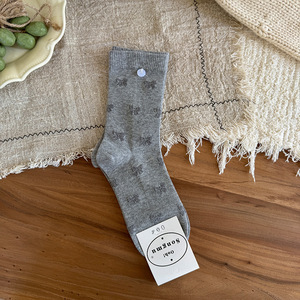 纽扣蝴蝶结袜子女澳棉抗菌中筒袜时尚百搭微压堆堆袜无骨韩系袜子