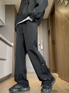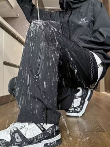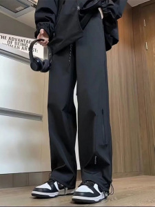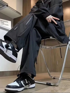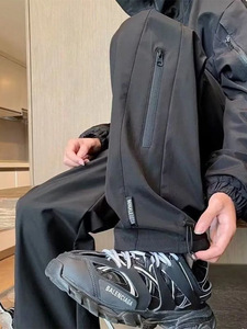 男秋季防水冲锋裤高街潮牌vibe软壳裤子美式机能风宽松黑色直筒裤