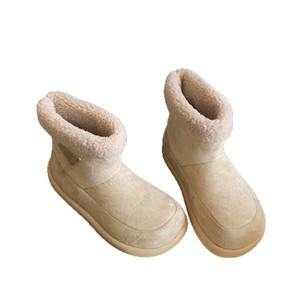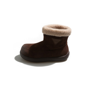 月屿时尚百搭毛毛雪地靴女2025新款复古绒面加绒厚底增高勃肯短靴