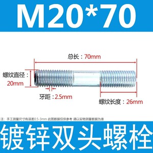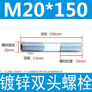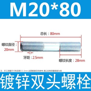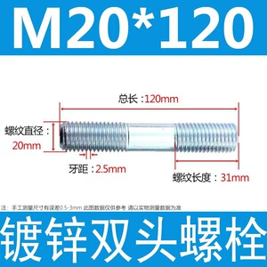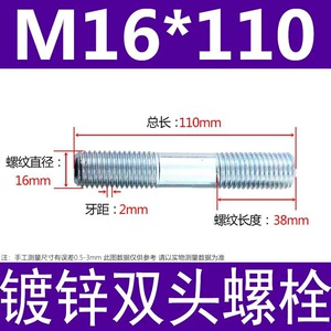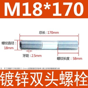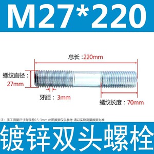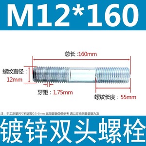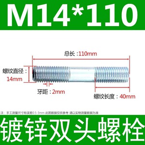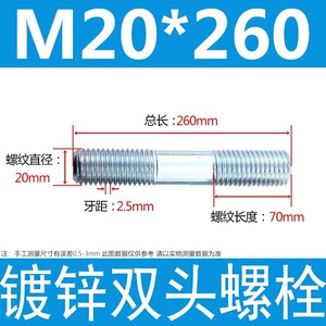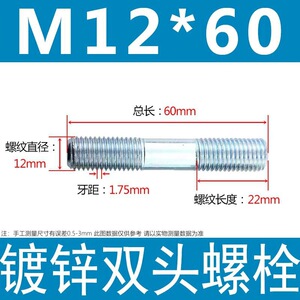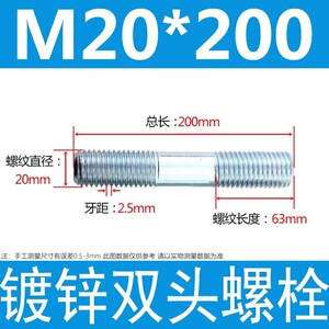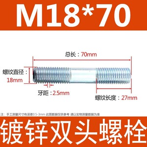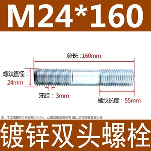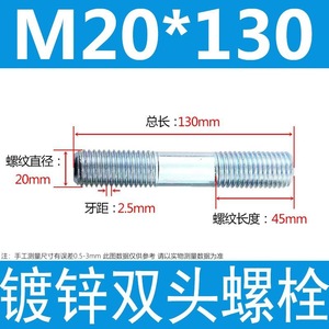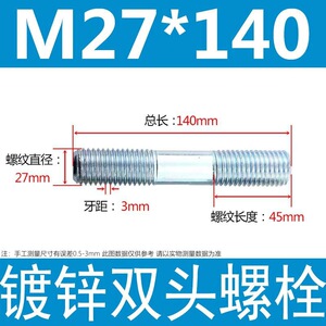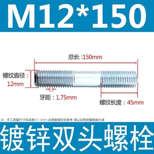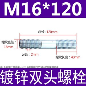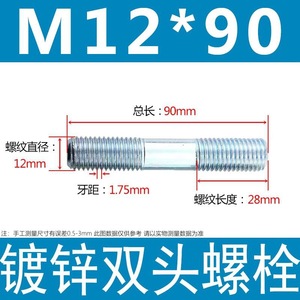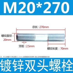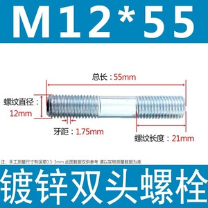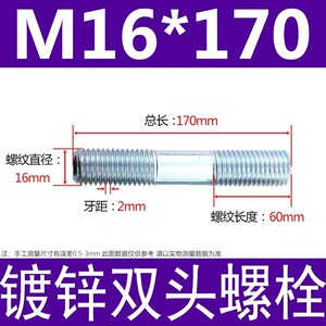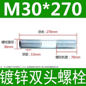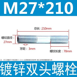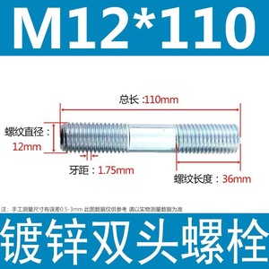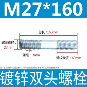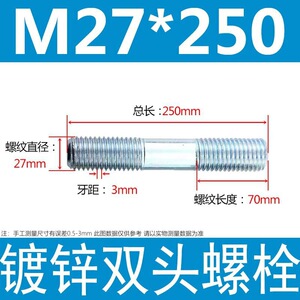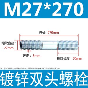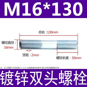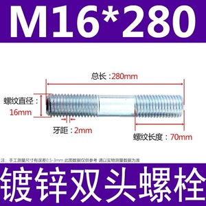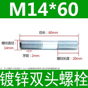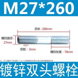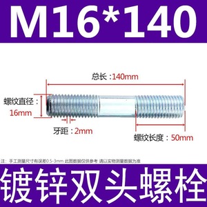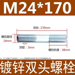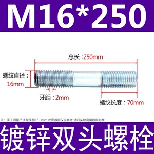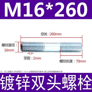 镀锌碳钢双头螺栓镀锌双头螺杆丝双头螺丝不锈钢双头螺栓双头螺柱