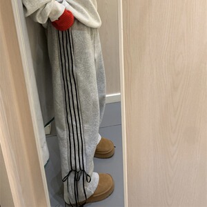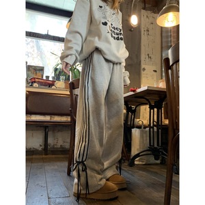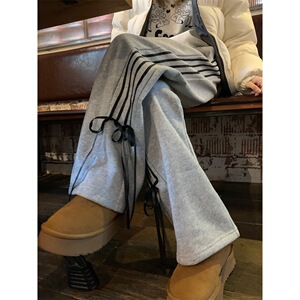 现货实拍~秋季韩版设计感丝带蝴蝶结灰色休闲直筒裤阔腿裤卫裤女