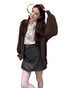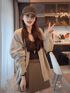 韩版V领慵懒风宽松毛衣外套女2025秋冬新款质显瘦针织开衫上衣