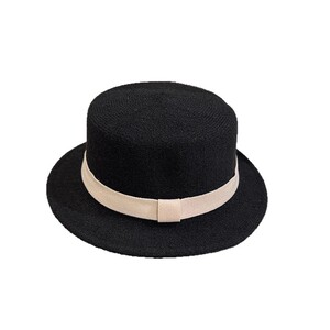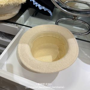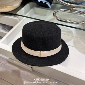 秋冬韩版织带装饰羊毛帽平顶帽平顶平沿礼帽优雅复古毡帽子女