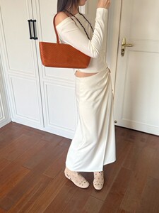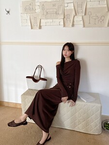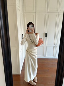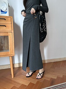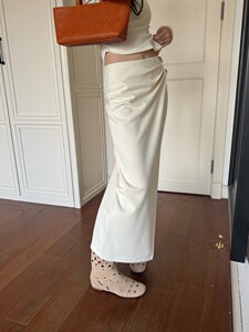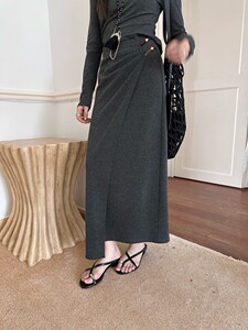 DIGM | 2025秋冬极简优雅串珠不规则松紧腰长裙半身裙女A19582