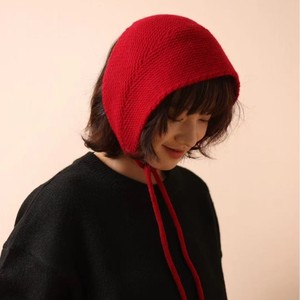 纯羊毛耳罩针织三角巾女百搭包头帽系带装饰头巾2025秋冬韩版披肩