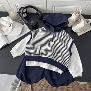男童套装秋装2025新款春秋时髦儿童男宝条纹卫衣马甲三件套潮流