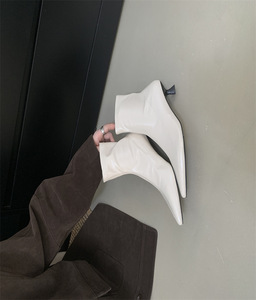 2025秋季新款时尚软皮后拉链低筒尖头细跟瘦瘦网红款马丁短靴女