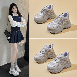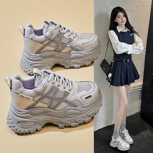 小个子增高休闲鞋百搭厚底运动鞋水钻秋季新款老爹鞋2025拼色女鞋