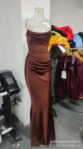 SDM195气质网纱拼接抹胸长款连衣裙三件套聚会礼服跨境货源批发新