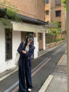 大码女装休闲套装气质翻领长袖衬衫+背心+披肩+阔腿裤套装