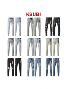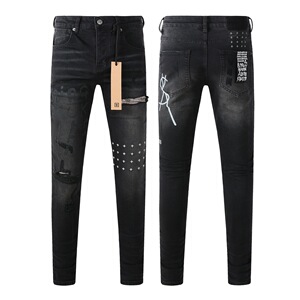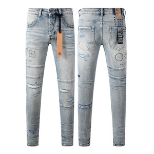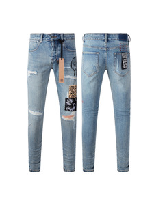 外贸跨境 欧美潮牌 街头PURPLE BRAND时尚修身小脚破洞做旧牛仔裤