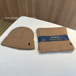 跨境外贸帽子围巾两件套小马针织帽刺绣百搭新款秋冬纯色围巾批发