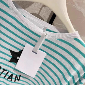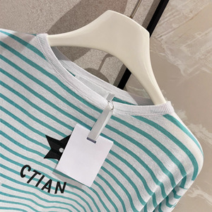 欧货法式高端女装薄荷绿星星印花字母条纹时尚百搭洋气显瘦上衣女