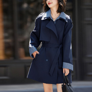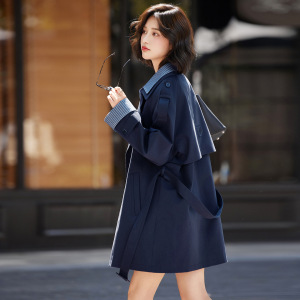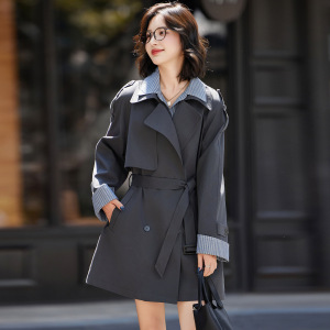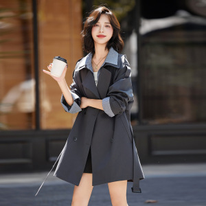 2025秋季新款韩版时尚设计感翻领系带收腰显瘦中长款风衣外套女
