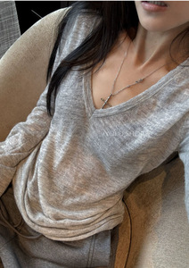 YOLO SHP 灰色羊驼毛高比例气质V领百搭针织毛衣修身打底衫上衣