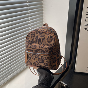 小众辣妹新款豹纹卡通双肩包收纳便携户外旅游毛绒背包跨境风潮