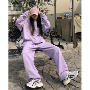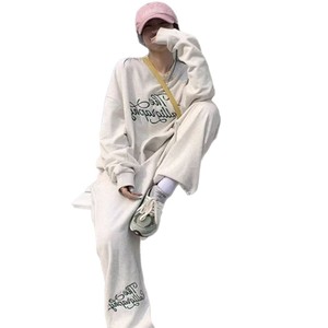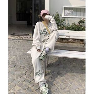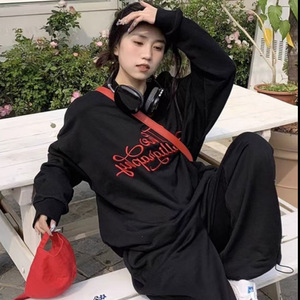 欧洲站跨境外贸时尚卫衣运动服套装女宽松显瘦休闲慵懒风两件套潮