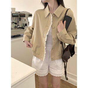 花边拼接翻领长袖夹克外套女2025秋季新款短款设计感棒球服上衣潮