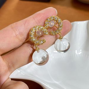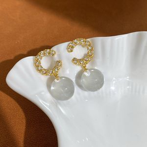小众设计高级感时尚复古微镶锆石C形透明珠吊坠耳夹轻奢气质耳钉