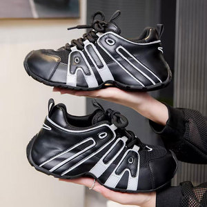 真皮阿甘鞋增高5厘米老爹鞋女2025秋冬新款慢跑鞋高级感运动鞋潮