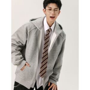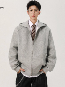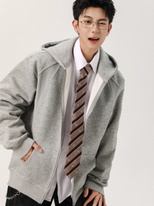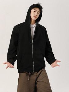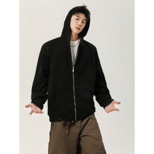 美式复古结构分割连帽开衫卫衣男秋季高级感痞帅宽松运动拉链外套
