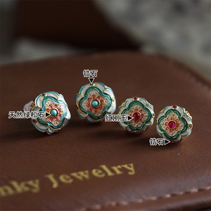 新款时尚复古微镶锆石红刚玉松石耳钉轻奢高级感耳饰女设计感小众