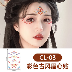 儿童花钿额头眉心贴 儿童汉服古风古装额头印花临时纹身贴纸