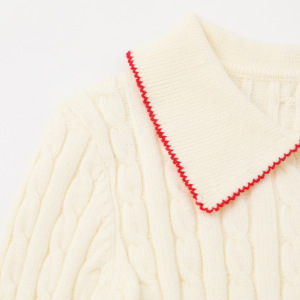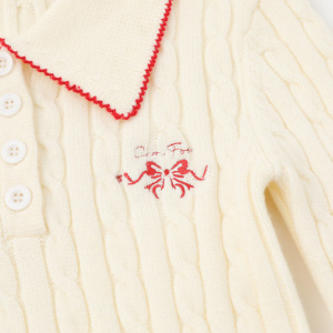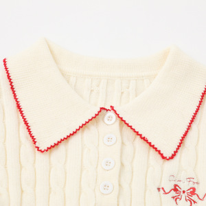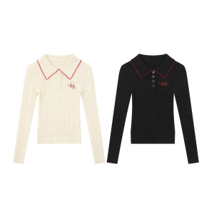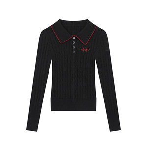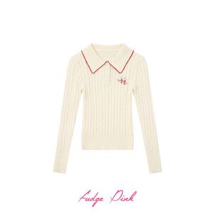 Fudge Pink 25秋季New实拍美式修身翻领刺绣针织长袖上衣