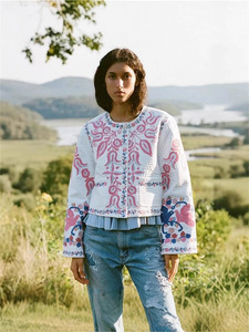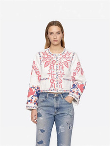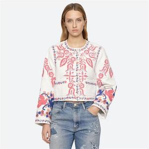 法式复古民族风花鸟刺绣圆领绗缝圆领短款宽松外套夹克南油外套女