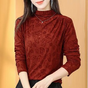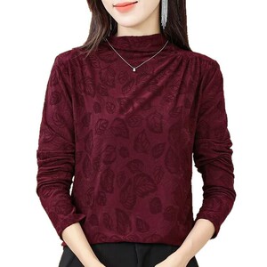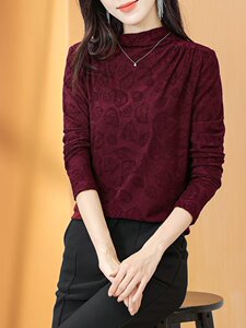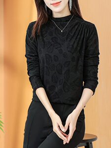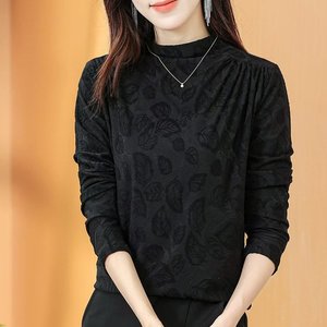 一件代发直播爆款2025秋季新款半高领抽褶洋气暗纹印花内搭打底衫