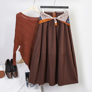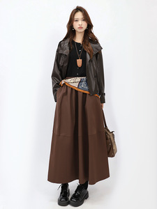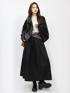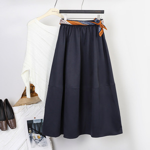 菲媛高级感配丝巾腰带洋气休闲半身裙女 秋冬新款纯色双插兜A字裙