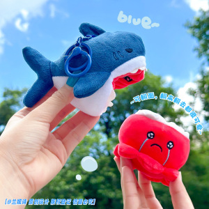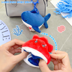 新品创意好玩翻翻鲨鱼毛绒公仔钥匙扣趣味解压翻翻乐玩偶挂件货源