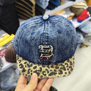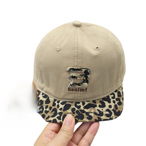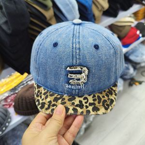 新款豹纹拼接色字母刺绣软顶短沿帽小头围时尚个性潮流百搭鸭舌帽