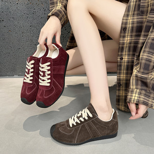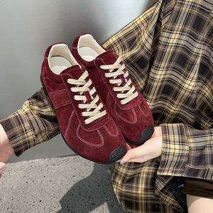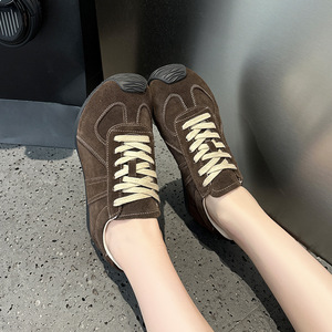 2025秋季小众舒适拼接皮面平底拼色德训鞋美式复古运动休闲阿甘鞋