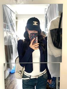 韩系藏青色开衫针织衫女春秋短款内搭叠穿吊带背心修身两件套上衣