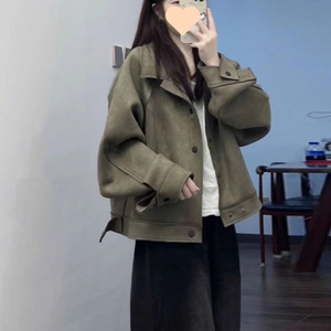 2025春季仿麂皮绒外套女春秋美式复古机车夹克工装小众设计感外套