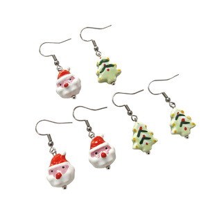 欧美节日饰品 创意陶瓷圣诞老人圣诞树耳饰 时尚百搭圣诞节耳环女