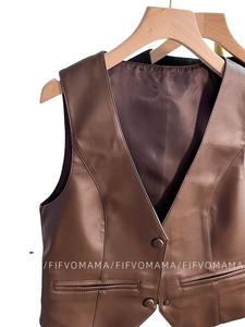 欧货pu皮衣马甲背心女2025秋高级感老钱风宽松叠穿V领坎肩外套