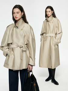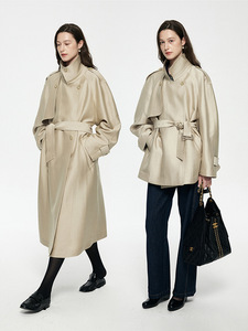 高级感轻奢真丝羊毛廓型风衣女秋冬新款宽松气质绑带过膝大衣外套