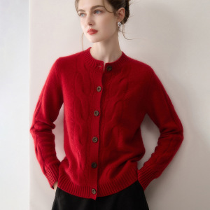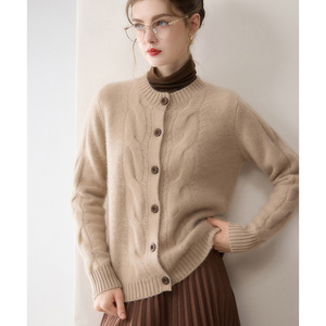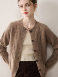 气质王炸!三股100%纯羊绒开衫毛衣女秋冬加厚针织外套新款上衣
