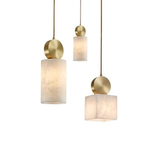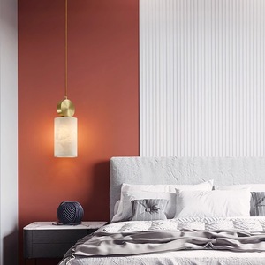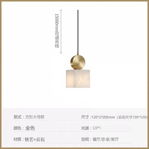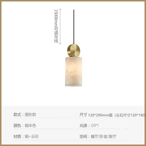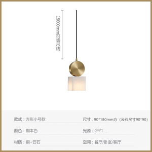 设计师简约单头吊线卧室床头灯现代新中式禅意全铜云石餐厅小吊灯