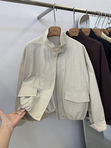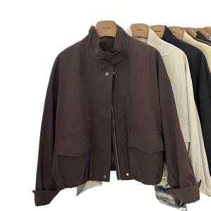 立领工装外套女秋季2025新款设计感小众港风宽松百搭休闲别致上衣